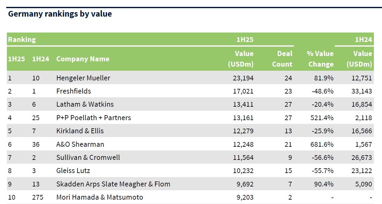 Hengeler Mueller claims top position for German M&A with 24 transactions with a combined value of more than Euro 23bn (based on Mergermarket; any German involvement). Our teams advised on landmark transactions such as the sale of Apleona, the delisting of Metro, the acquisition of Viridium, the owners of Motel One in their strategic partnership with PAI Partners or, most recently, the sale of Sky DACH to RTL Group and BioNTech's public exchange offer for CureVac.
